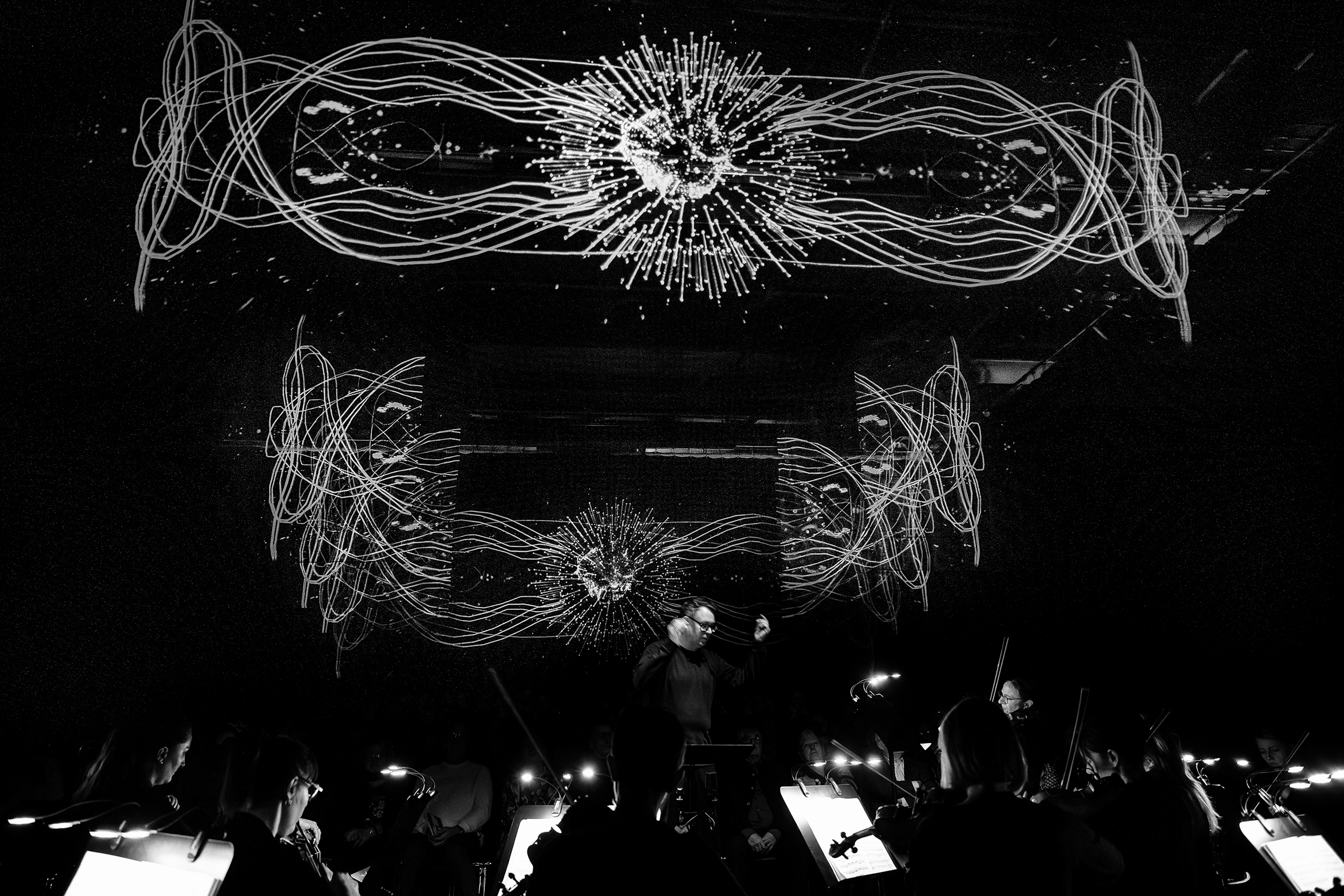 Zusätzlich wurden an den Instrumenten des Orchesters spezielle Sensoren angebracht, die die projizierten Bilder beeinflussten. Die Musik wurde so zu einem interaktiven visuellen Erlebnis, bei dem Bild und Klang in einem ständigen Dialog miteinander standen.
