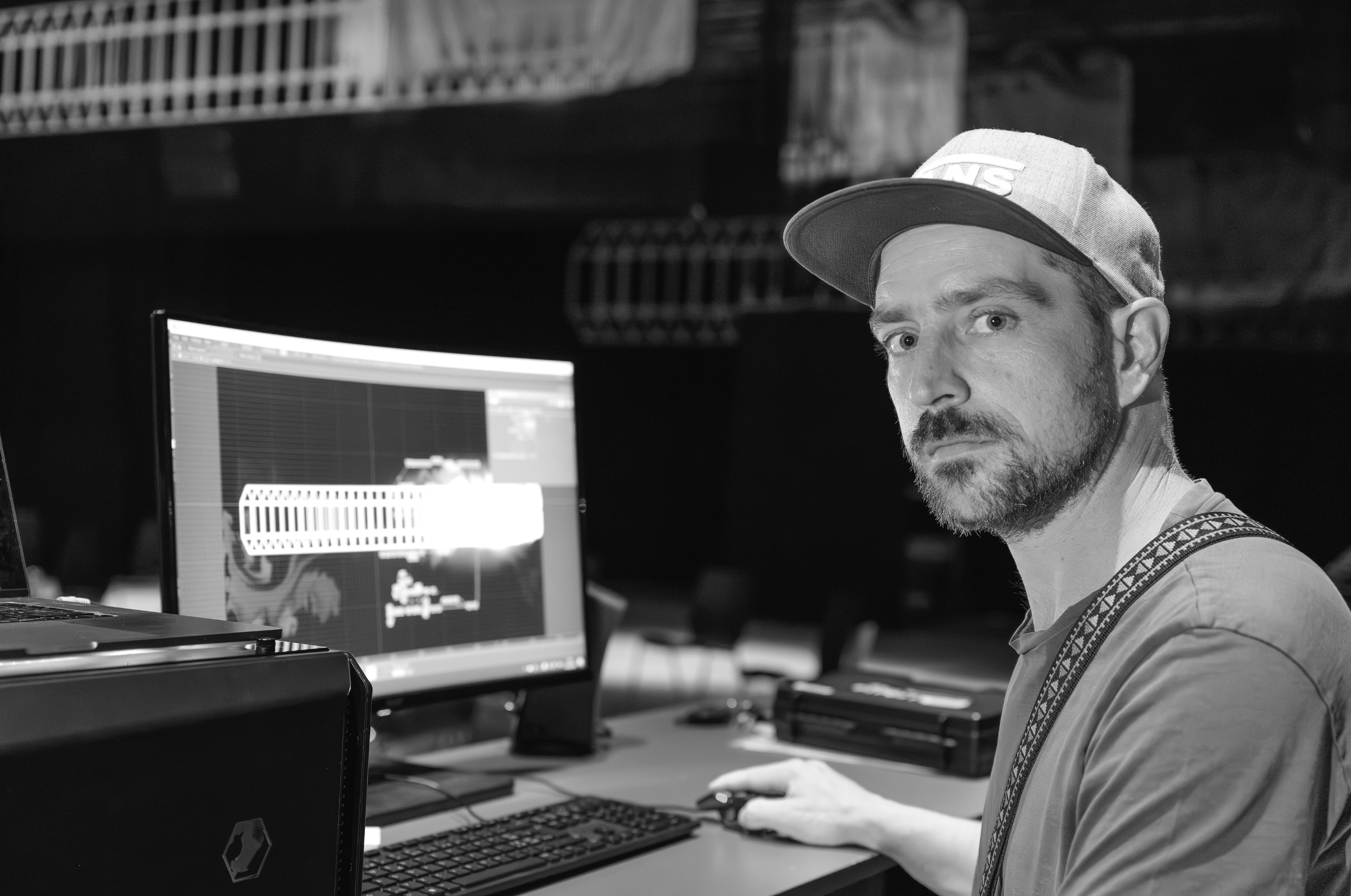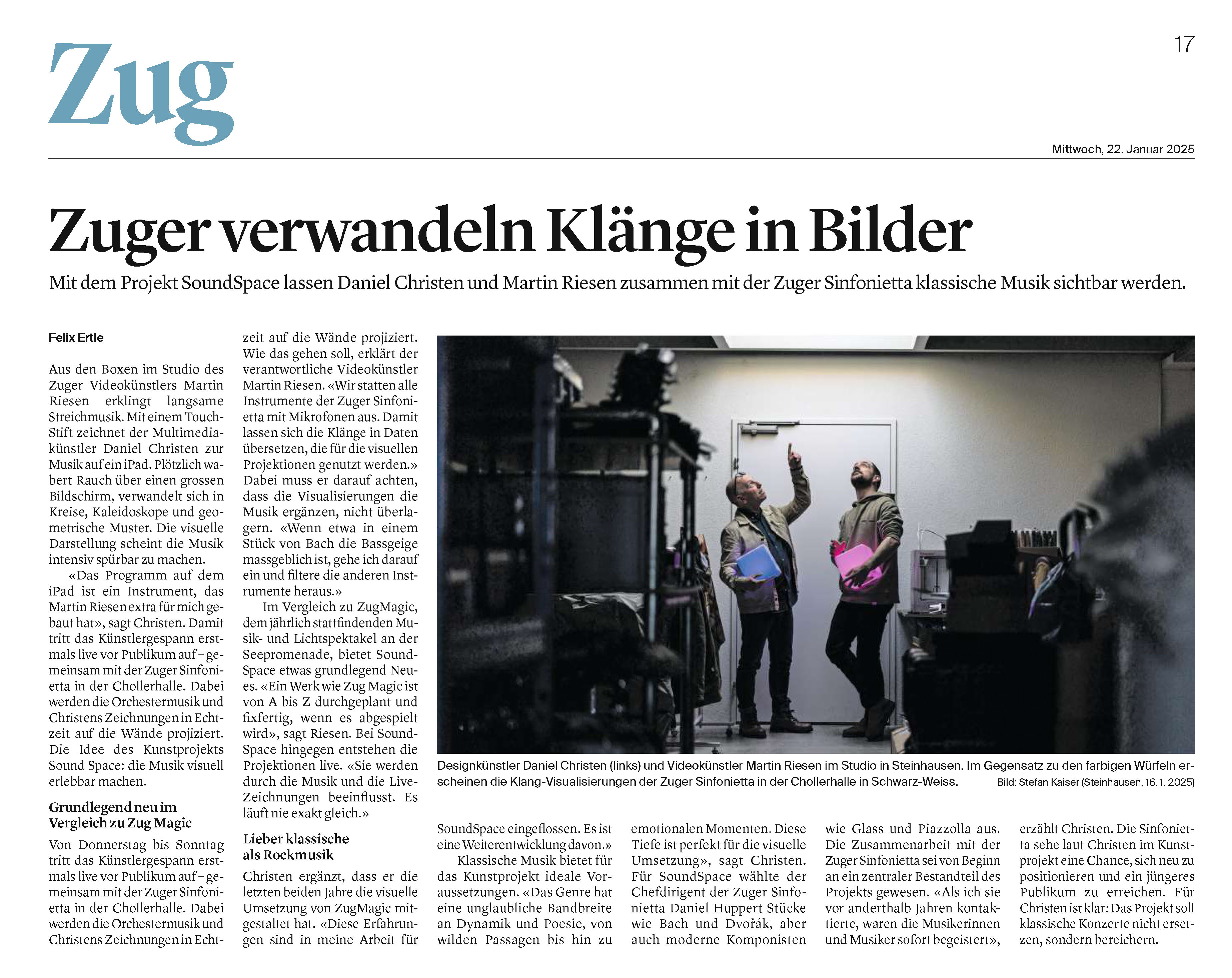 Das Herzstück von Soundspace war der Musicpainter, ein bildgebendes Instrument, das die Musik in Bilder übersetzte. Daniel Christen hat die Musik live mit dem Musicpainter begleitet. Diese bewegten Bilder wurden auf transparente Leinwände im gesamten Raum projiziert, sodass die Zuschauer die Musik nicht nur hören, sondern auch sehen konnten.